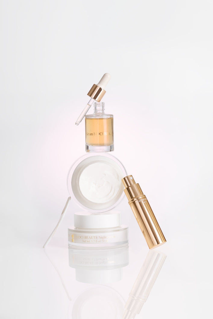 Cette conviction qui veut que l’esthétique soit un composant à part entière de la performance d’un produit s’applique aussi dans le secteur du soin. Ce qui a conduit la Marque MDCI à mettre au point une gamme restreinte de soins formulés par des laboratoires ayant accès aux meilleurs actifs et procédés de fabrication, et à offrir aux fruits de ces recherches des écrins uniques, pour un Rituel de Beauté transcendé par le plaisir, la plénitude et la sérénité qu’apporte la beauté d’objets rares, beaux et précieux.